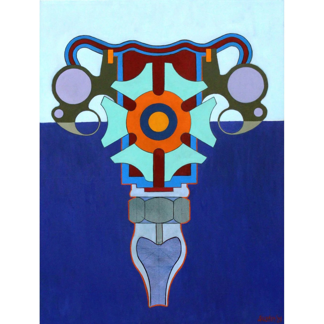 This concise, geometric composition presents the viewer with a captivating symmetric design. My intent was to construct the female reproductive system as mechanical components.