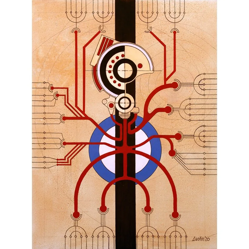 This graphic abstract is one of a series paying homage to the medical arts and sciences with focus on the medical specialty of Neurology. My intention was to present the nervous system as an electrical schematic depicting the complicated electrical network conveying signals throughout the body.